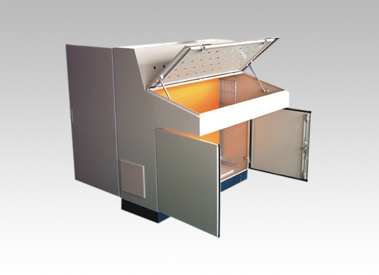 鋼板箱體及箱門(mén)表面經(jīng)過(guò)酸洗、磷化、除蠟、水洗、凈化等12道國(guó)際標(biāo)準(zhǔn)前處理工序后,靜電噴涂底漆,表面噴塑,標(biāo)準(zhǔn)柜體顏色RAL7035或RAL7032,可提供色標(biāo)卡指定顏色;不銹鋼雙面拉絲處理。